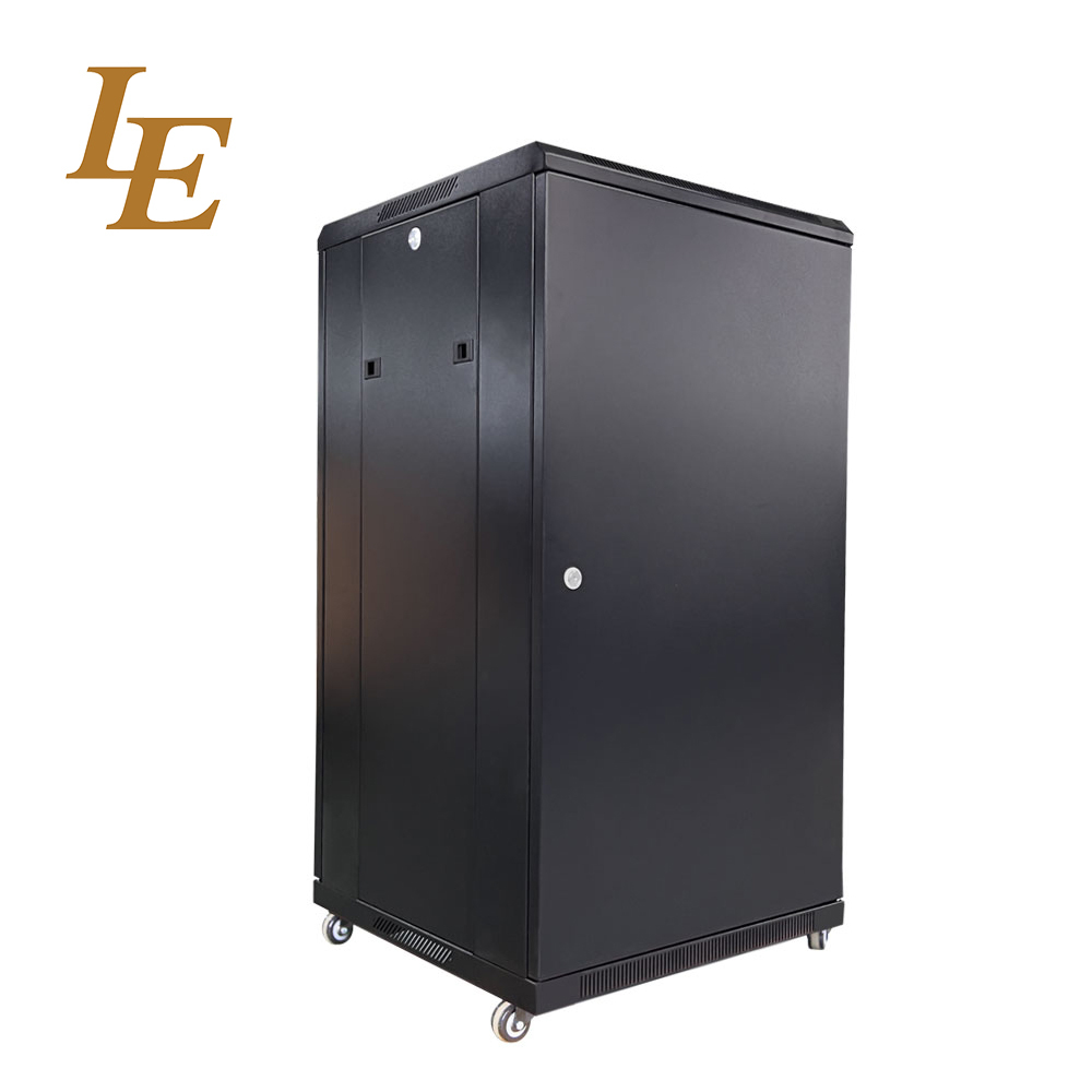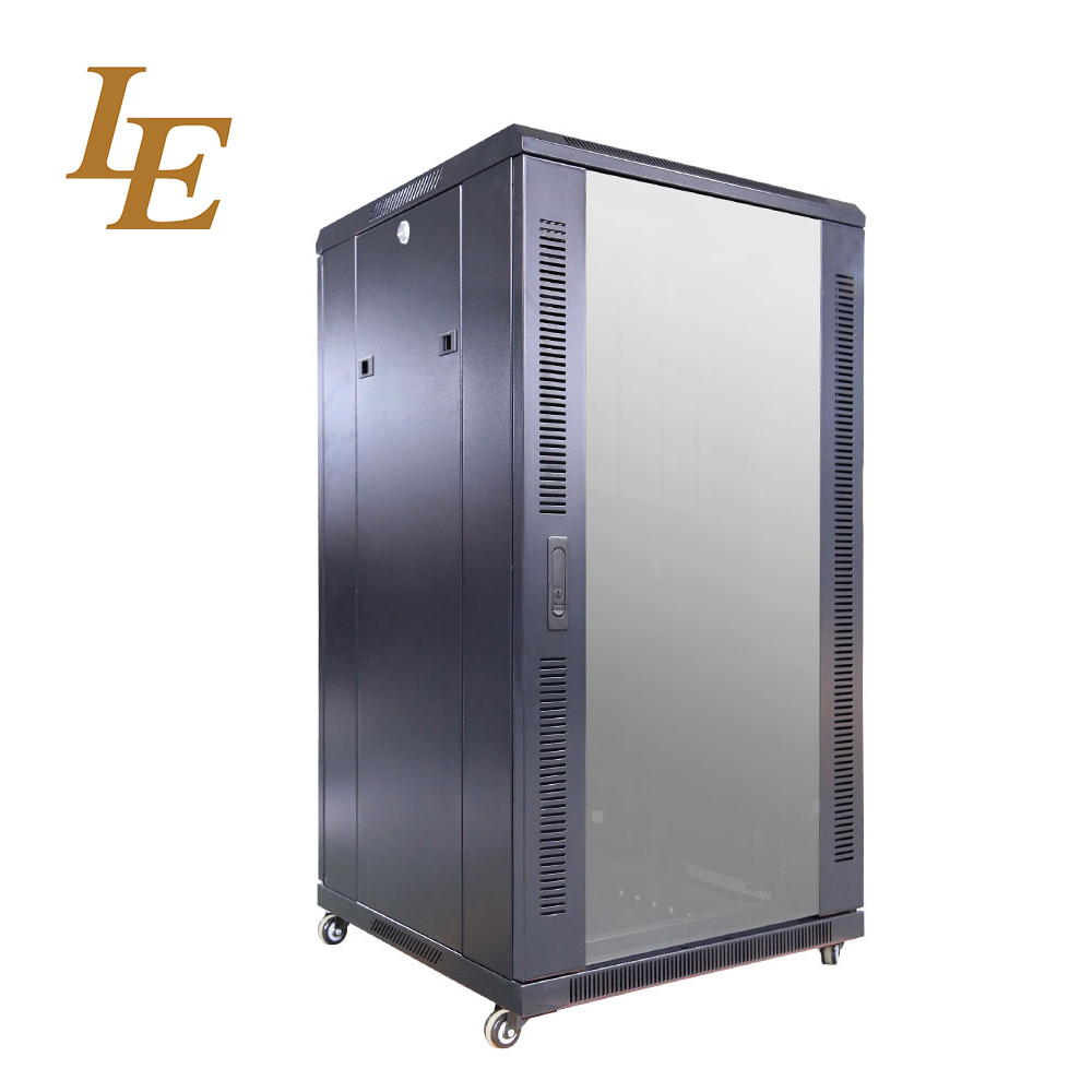 19インチ 18U 800mm幅 22U 600mm幅 強化ガラス製フロントドアとハンドルロック付きソリッドメタル製リアドア ラック RAL9004 ブラック RAL9005 ブラック フラット梱包
